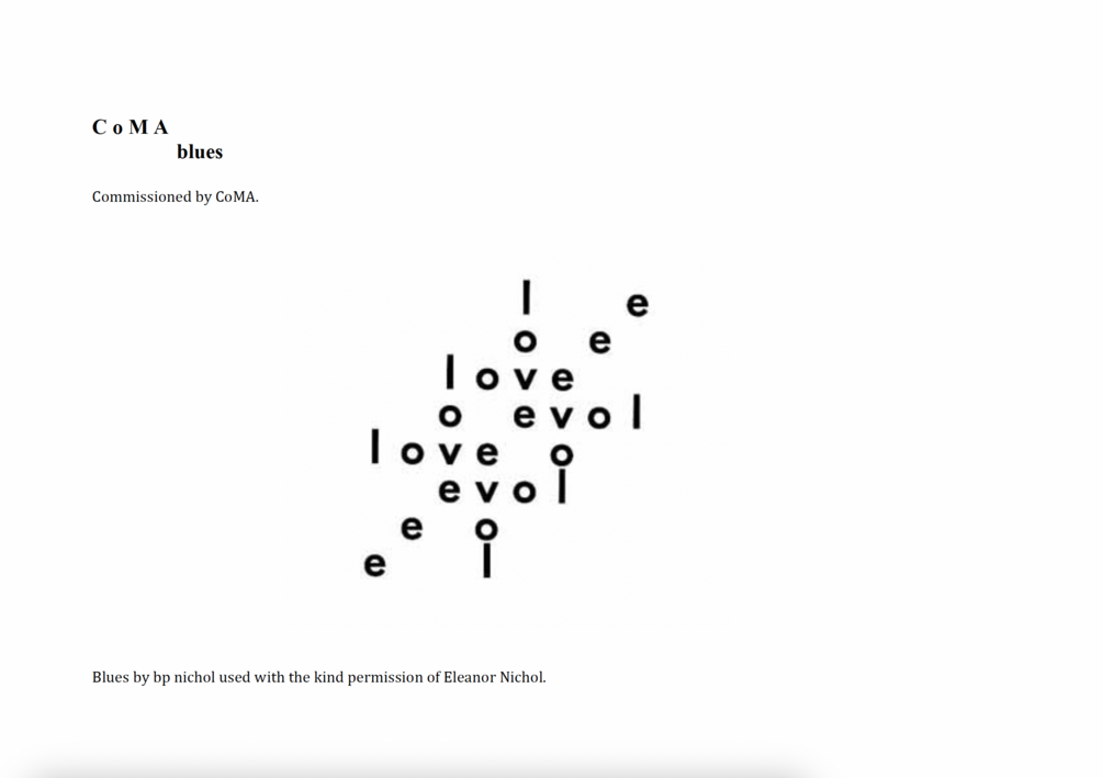 CoMABlues by Kerry Andrew, a flexible scores for 6 or more voices.