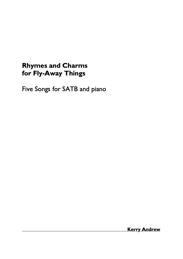 Rhymes and Charms for Fly-Away Things (SATB and Piano) by Kerry Andrew: a set of five songs.