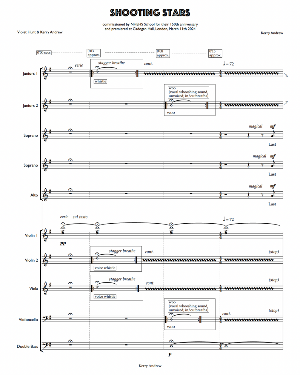 Shooting Stars by Kerry Andrew for SSAA and string orchestra/piano.