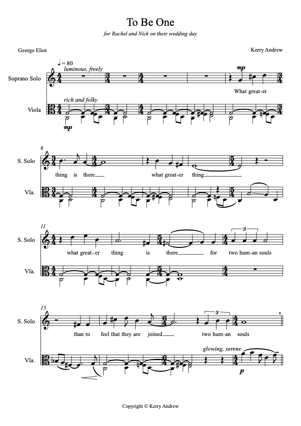 To Be One (Soprano/Mezzo-Soprano and Viola) by Kerry Andrew