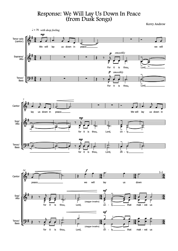We Will Lay Us Down In Peace (Response) by Kerry Andrew (SATB)