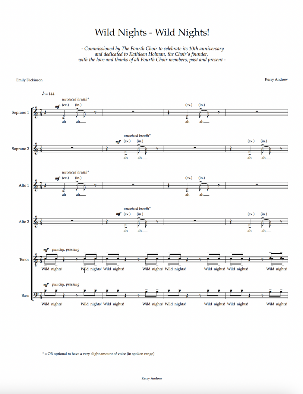 Wild Nights – Wild Nights! for SATB Choir, by Kerry Andrew